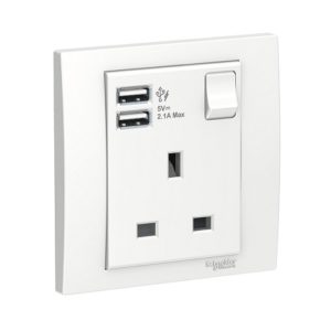 Schneider 施耐德 – 13A兩位 插座 連USB 充電插座 E83T25ACUSB_WE_C5