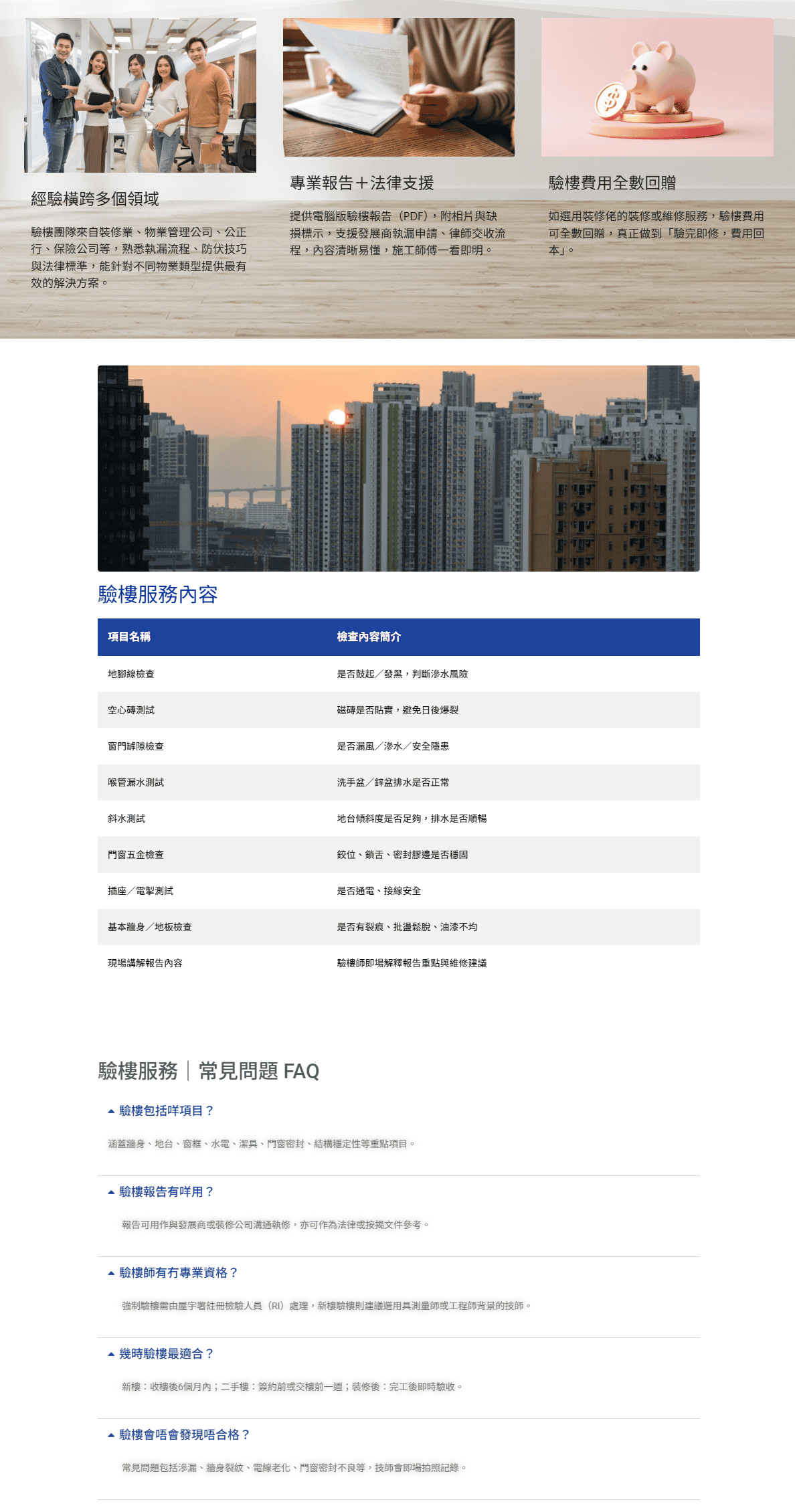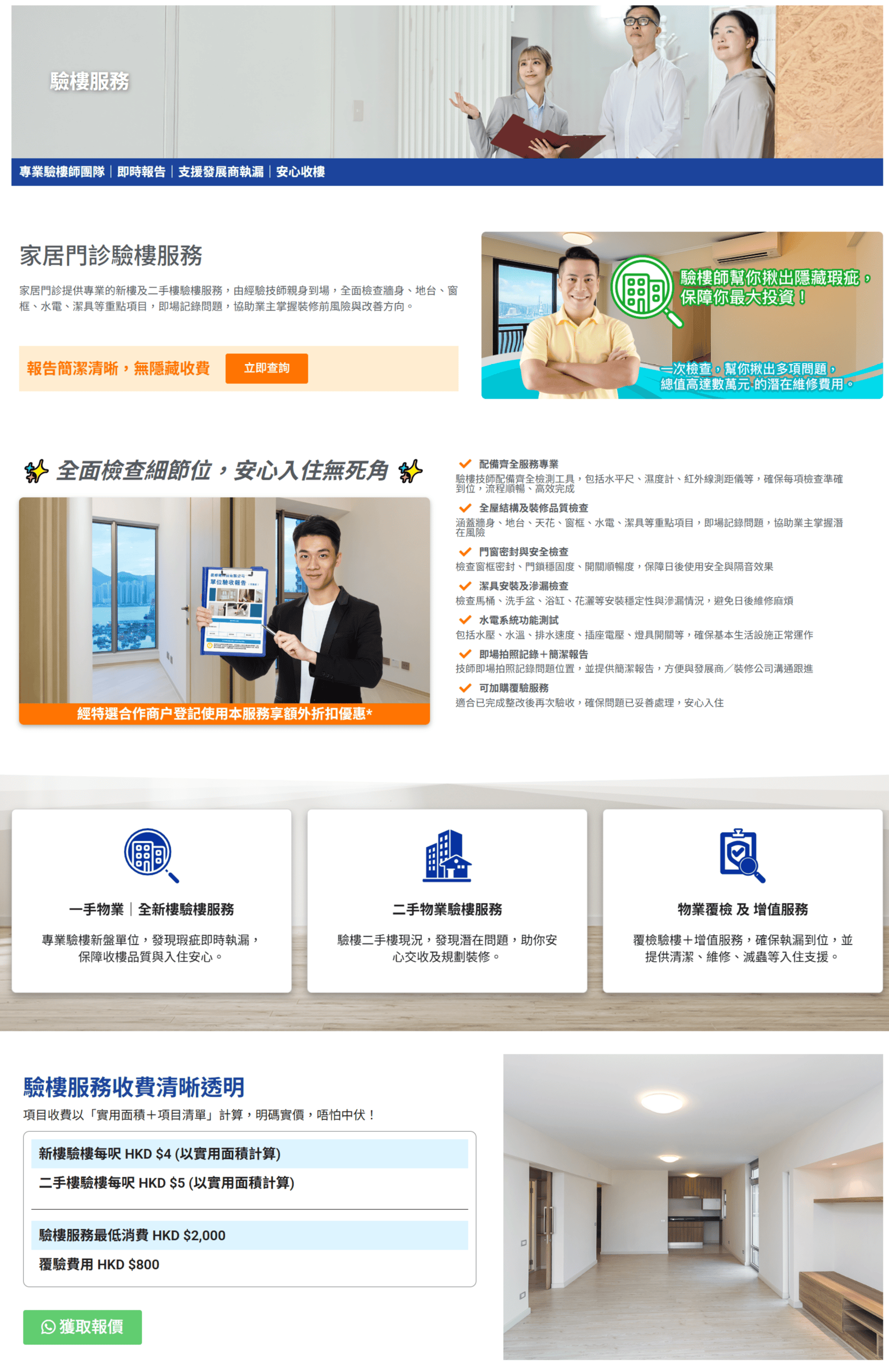 | 服務 | 驗樓服務 (最低消費), 物業覆檢 |