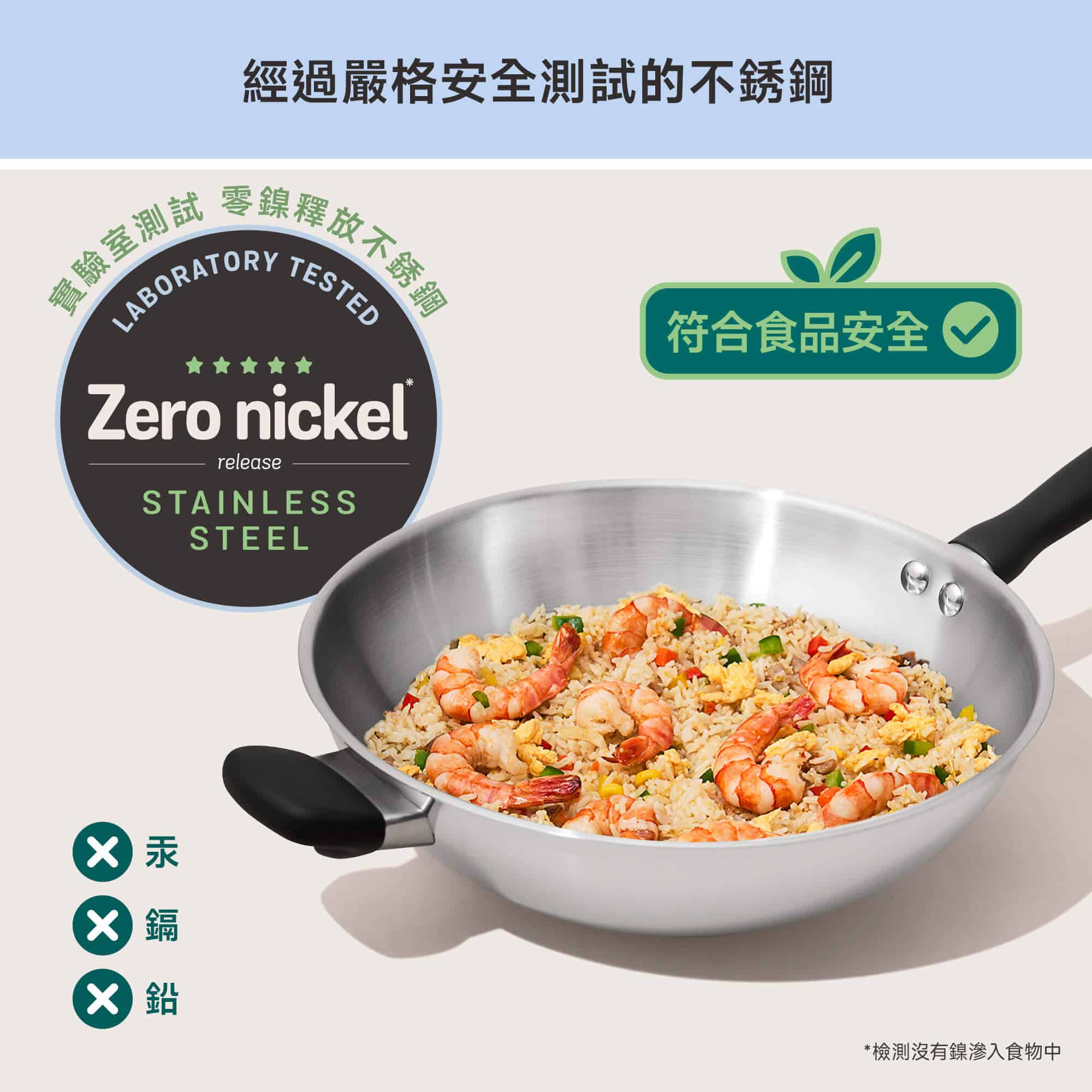 • 優質不銹鋼,零鎳釋放