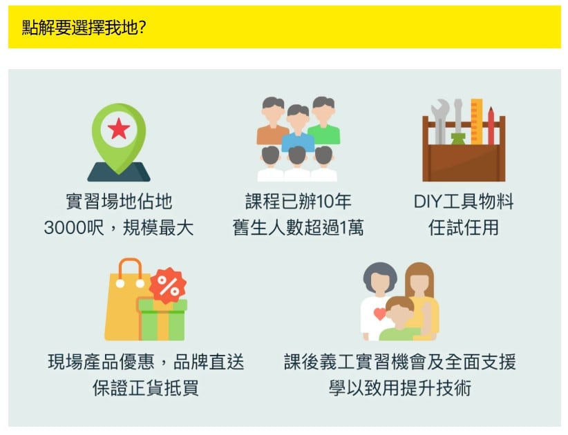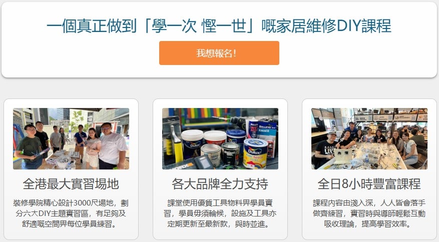 裝修學院是香港的DIY基地,提供一站式DIY教學、電動工具及DIY物料採購、家居維修義工服務,以及全天候的課後支援。