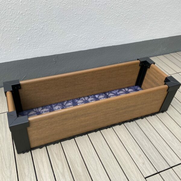 花箱與NewTechWood超越木環保地板同樣採用了NewTechWood UltraShield 的芯材及保護層,與環保地板配合使用,省卻挑選顏色及量度尺寸的時間,輕易配搭出自我風格的園藝區。